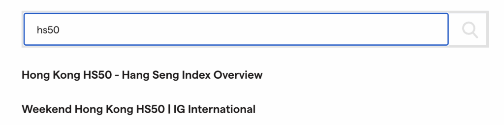 • 然後點擊搜尋結果中的「Hong Kong HS50 – Hang Seng Index Overview 恒生指數(HSI)概述: 香港HS50價格走勢、圖表及新聞 」,如果想看周未報價,則可點擊「Weekend Hong Kong HS50 週末香港HS50 現貨」
